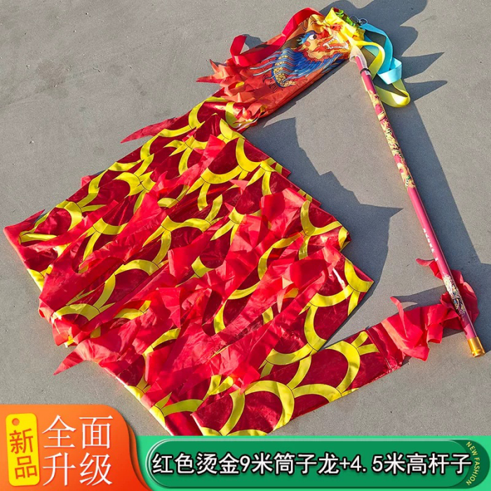 Лента Дракона 9-метровая на телескопическом шесте (красная с чешуйками).